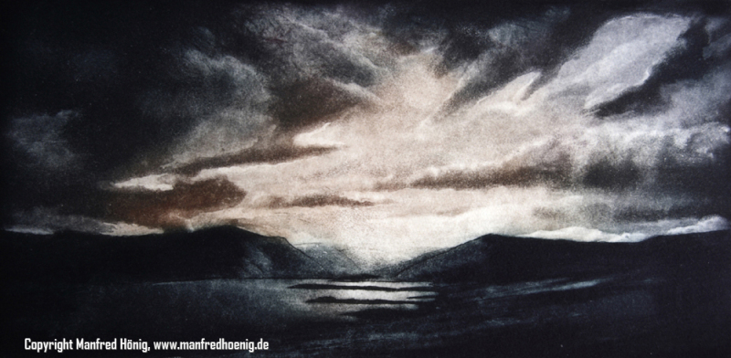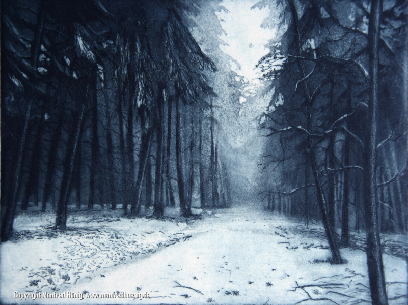 Bei Radierungen wird mittels verschiedener komplizierter Verfahren das Bildmotiv in Vertiefungen auf einer Metallplatte, meist Kupfer umgesetzt. Je tiefer Punkt oder Linie, desto mehr Farbe befindet sich an dieser Stelle. die dann im Druck auf ein Papier umgedruckt wird. Das geschieht einzeln, im Handabzug auf einer Walzenpresse. Von daher gelten Radierungen auch als Originalgrafik, da sie sich durch den Handabzug immer leicht voneinander unterscheiden.